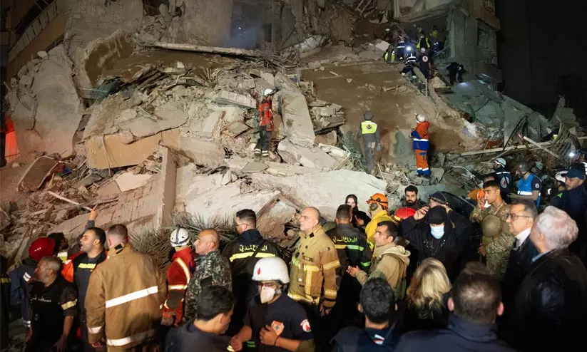 ബെയ്റൂട്ടിലെ തകർന്നടിഞ്ഞ കെട്ടിടങ്ങൾക്കിടയിൽ രക്ഷാപ്രവർത്തനം നടത്തുന്നു.ഫോട്ടോ Daniel Carde/Getty Images