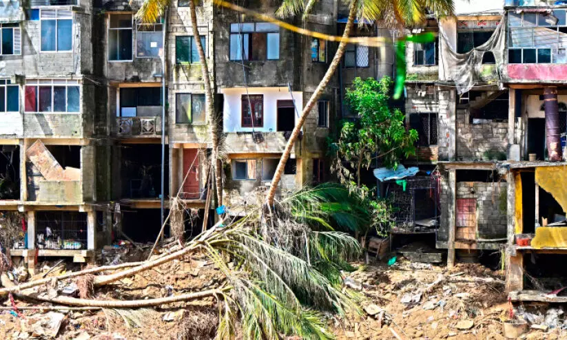 ശ്രീലങ്കയിലെ ഗാംപോളയിൽ പ്രളയത്തിൽ തകർന്ന കെട്ടിടം