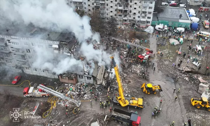 ഒമ്പതു നിലകളുള്ള ഫ്ലാറ്റ് സമുച്ചയത്തിന് ആക്രമണത്തിൽ തീപിടിച്ചതായി യുക്രെയ്ൻ സ്റ്റേറ്റ് എമർജൻസി സർവിസ് അറിയിച്ചു. കൂടാതെ, പോൾട്ടാവ മേഖലയിലെ ഊർജനിലയങ്ങൾക്ക് നേരെയും റഷ്യൻ ആക്രമണം ഉണ്ടായി.