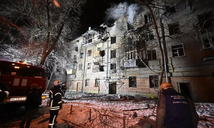 യുക്രെയിനിലെ ഖാർകീവിലുണ്ടായ റഷ്യന് ആക്രമണത്തിൽ തകർന്ന കെട്ടിടത്തിന്റെ രക്ഷാപ്രവർത്തനത്തിനിടയിൽ