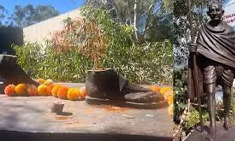 മെൽബൺ: മെൽബണിലെ റോവില്ലിലുള്ള ആസ്ട്രേലിയൻ ഇന്ത്യൻ കമ്മ്യൂണിറ്റി സെന്ററിന് പുറത്ത് നിന്ന് മഹാത്മാഗാന്ധിയുടെ വെങ്കല പ്രതിമ മോഷണം പോയി. ന്യൂഡൽഹിയിലെ ഇന്ത്യൻ കൗൺസിൽ ഫോർ കൾച്ചറൽ റിലേഷൻസിന്റെ (ഐ.സി.സി.ആർ) സമ്മാനമായിരുന്നു ഈ പ്രതിമ. തിങ്കളാഴ്ച പുലർച്ചെ ഏകദേശം 12.50 ഓടെയാണ് മോഷണം നടന്നതെന്ന് ആസ്ട്രേലിയ ടുഡേ റിപ്പോർട്ട് ചെയ്യുന്നു. ആംഗിൾ ഗ്രൈൻഡർ ഉപയോഗിച്ചാണ് 426 കിലോഗ്രാം ഭാരമുള്ള പ്രതിമ അജ്ഞാതരായ മോഷ്ടാക്കൾ മുറിച്ചെടുത്തത്. സമൂഹ മാധ്യമങ്ങളിൽ പോസ്റ്റ് ചെയ്ത ഫോട്ടേകളിൽ പ്രതിമയുടെ കണങ്കാലിൽ ഒന്ന് മുറിഞ്ഞ നിലയിലാണ്. മുഖംമൂടി ധരിച്ച മൂന്നുപേരാണ് മോഷണം നടത്തിയത് എന്ന് കെട്ടിടത്തിലെ സി.സി.ടി.വി ദൃശ്യങ്ങളിൽ നിന്ന് വ്യക്തമാണ്.