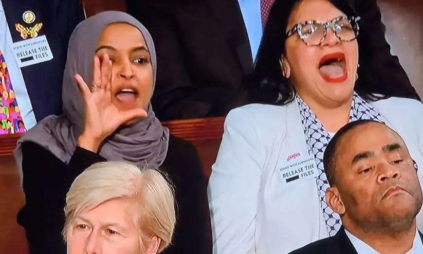 സ്റ്റേറ്റ് ഓഫ് ദി യൂണിയൻ പ്രസംഗത്തിനിടെ കോൺഗ്രസിലെ രണ്ട് ഡെമോക്രാറ്റിക് അംഗങ്ങളും പ്രതിഷേധിച്ചതിനാണ് ട്രംപിന്റെ അധിക്ഷേപം. ചൊവ്വാഴ്ച ട്രംപിന്റെ പ്രസംഗത്തിനിടെ റാഷിദ തലൈബും ഇൽഹാൻ ഉമറും ട്രംപ് ഭരണകൂടത്തിന്റെ കുടിയേറ്റവിരുദ്ധ നടപടികളെ രൂക്ഷമായി വിമർശിച്ചിരുന്നു.