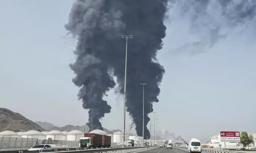 യു.എ.ഇയിലെ ഫുജൈറയിലെ എണ്ണ കേന്ദ്രത്തിൽ ആക്രമണത്തെ തുടർന്ന് പുക ഉയരുന്നു
