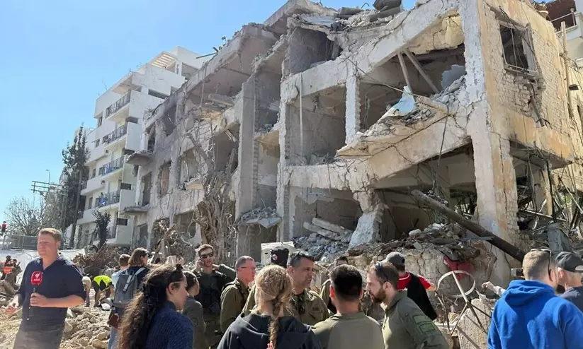 ഇറാന്റെ ബാലിസ്റ്റിക് മിസൈൽ ആക്രമണത്തിൽ തകർന്ന ഇസ്രായേൽ തലസ്ഥാനമായ തെൽഅവീവിലെ കെട്ടിടം