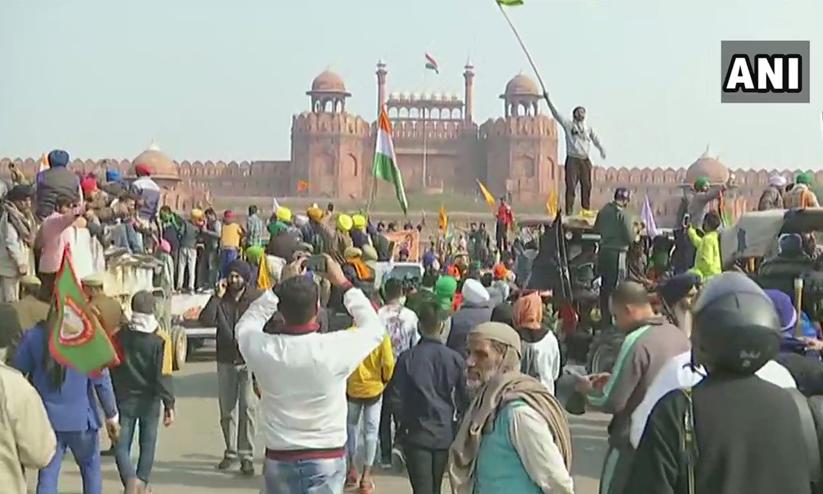 ഡൽഹി പൊലീസ് തീർത്ത തടസങ്ങൾ മറികടന്ന് ഒരു സംഘം കർഷകർ ചെങ്കോട്ടയിലെത്തി.