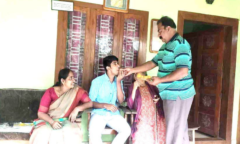 text_fieldsഅക്ഷയ്ക്ക് പിതാവ് ബിനോജി മധുരം നൽകുന്നു
