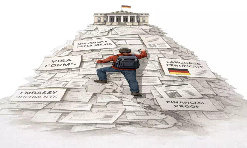 text_fieldsഇവിടെയാണ് ബാച്ചിലേഴ്സ്(Degree) പഠിക്കാൻ പോകുന്ന ഇന്ത്യൻ വിദ്യാർഥികൾ കുടുങ്ങുന്നത്. ജർമനിയിൽ സ്കൂൾ വിദ്യാഭ്യാസം 13 വർഷമാണ്. നമ്മുടെ നാട്ടിൽ അത് 12വർഷവും(പ്ലസ് ടു). അതിനാൽ പ്ലസ് ടു കഴിഞ്ഞ ഉടനെ ജർമനിയിൽ ഡിഗ്രിക്ക് ചേരാൻ കഴിയില്ല.