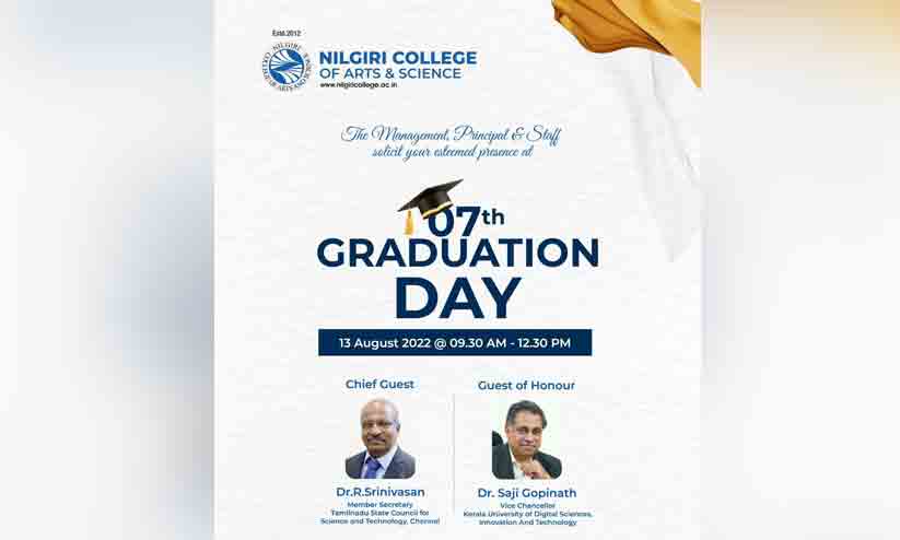 date_range 12 Aug 2022 5:14 PM ISTനീലഗിരി കോളജിന്റെ ഏഴാമത് ബിരുദദാന സമ്മേളനം ഇന്ന്