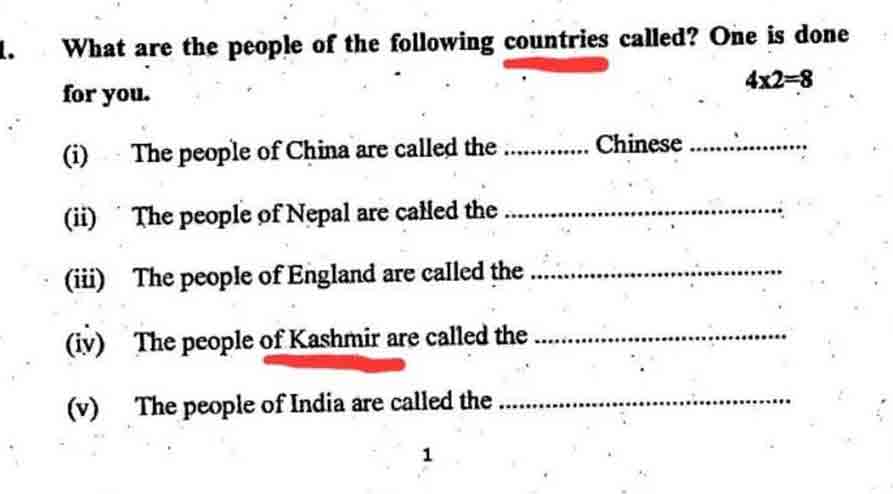 താഴെ പറയുന്ന രാജ്യങ്ങളുടെ ആളുകളെ എന്തുപേരാണ് വിളിക്കുക എന്ന ചോദ്യത്തിനു താഴെയാണ് മറ്റ് രാജ്യങ്ങളുടെ കൂട്ടത്തിൽ കശ്മീരിന്റെ പേര് നൽകിയത്. ദ പീപ്ൾ ഓഫ് കശ്മീർ ആർ കോൾഡ്? എന്നായിരുന്നു ചോദ്യം.