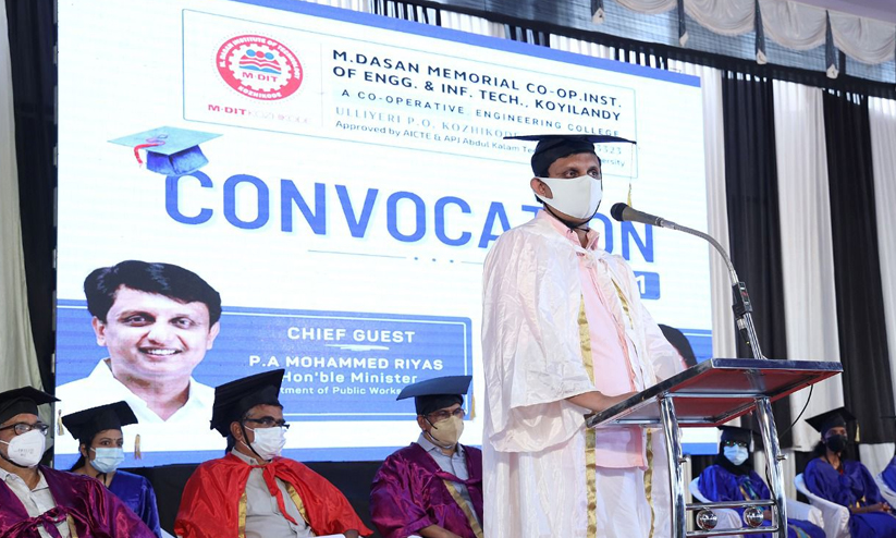 എം. ദാസൻ ഇൻസ്റ്റിറ്റ്യൂട്ട് ഓഫ് ടെക്നോളജിയിലെ 2016-20, 2017-21 ബാച്ച് വിദ്യാർഥികളുടെ ബിരുദദാന ചടങ്ങ് പൊതുമരാമത്ത് മന്ത്രി പി.എ. മുഹമ്മദ് റിയാസ് ഉദ്ഘാടനം ചെയ്തു. എം-ഡിറ്റ് ചെയർമാൻ എം. മെഹബൂബ് അധ്യക്ഷത വഹിച്ചു.