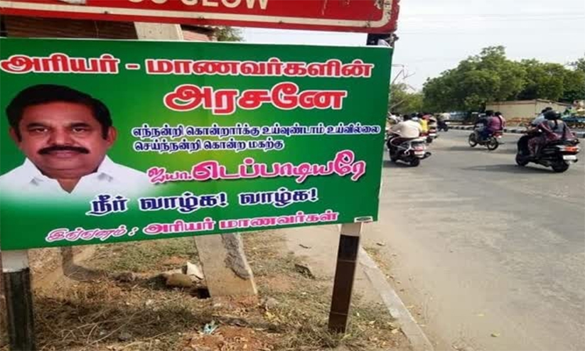 text_fieldsതമിഴ്നാട് മുഖ്യമന്ത്രി എടപ്പാടി പളനിസാമിയെ അഭിനന്ദിച്ച് ഇൗറോഡിൽ വിദ്യാർഥികൾ സ്ഥാപിച്ച ബോർഡ്