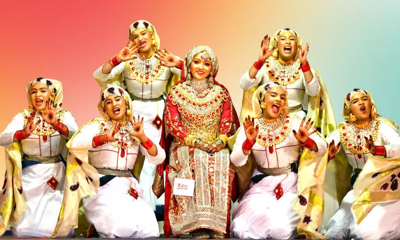text_fieldsകണ്ണൂർ: ‘പത്ത് ചുറയുള്ള പച്ച വൈര കല്ല് വെച്ച മാലയും കൊണ്ട് വരും മാരനെ രണ്ട് കണ്ണ് കാത്തിരിപ്പുണ്ട്...’ മൈലാഞ്ചി മൊഞ്ചിൽ മണവാട്ടിമാരും നാരികളും നാടൻ ഈണങ്ങൾക്ക് ചുവടുവെച്ച് നാടോടികളും കലോത്സവ വേദികളിൽ ആളനക്കമുണ്ടാക്കി.
