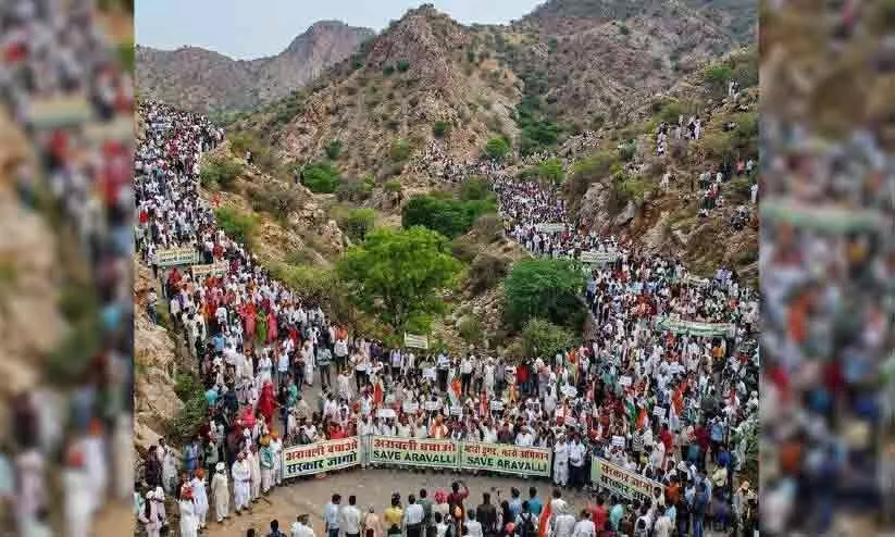 text_fieldsആരവല്ലി പർവതനിരകൾക്ക് കേന്ദ്ര സർക്കാർ തയാറാക്കി സുപ്രീംകോടതി മോലൊപ്പ് ചാർത്തിയ നിർവചനം രാജസ്ഥാനിലും ഹരിയാനയിലും ശക്തമായ ജനകീയ സമരങ്ങൾക്ക് വഴിമരുന്നിട്ടിരിക്കുകയാണ്. 100 മീറ്റർ ഉയരത്തിലുള്ള രണ്ട് കുന്നുകൾക്കിടയിൽപ്പെടുന്ന ഭാഗങ്ങൾ മാത്രമേ ആരവല്ലി പർവതനിരകളായി കണക്കാക്കൂ എന്ന പുതിയ നിർവചനത്തോടെ അരാവലിയുടെ ബഹുഭൂരിഭാഗവും പുറത്താകുമെന്ന് ചൂണ്ടിക്കാട്ടിയാണ് രാജസ്ഥാനിലും ഹരിയാനയിലും സമരങ്ങൾ പൊട്ടിപ്പുറപ്പെട്ടിരിക്കുന്നത്. നാല് സംസ്ഥാനങ്ങളിലെ 34 ജില്ലകളിലായി വ്യാപിച്ചുകിടക്കുന്ന ആരവല്ലിയുടെ ഏതാനും ഭാഗങ്ങൾ മാത്രം പരിശോധിച്ച് തയാറാക്കിയ പുതിയ നിർവചനപ്രകാരം എത്രമാത്രം പർവതഭാഗങ്ങൾ ഖനനത്തിനും മറ്റു വികസന പ്രവർത്തനങ്ങൾക്കുമായി ദുരുപയോഗം ചെയ്യുമെന്ന് പറയാനാവില്ലെന്ന് സമരക്കാർ മുന്നറിയിപ്പ് നൽകുന്നു.