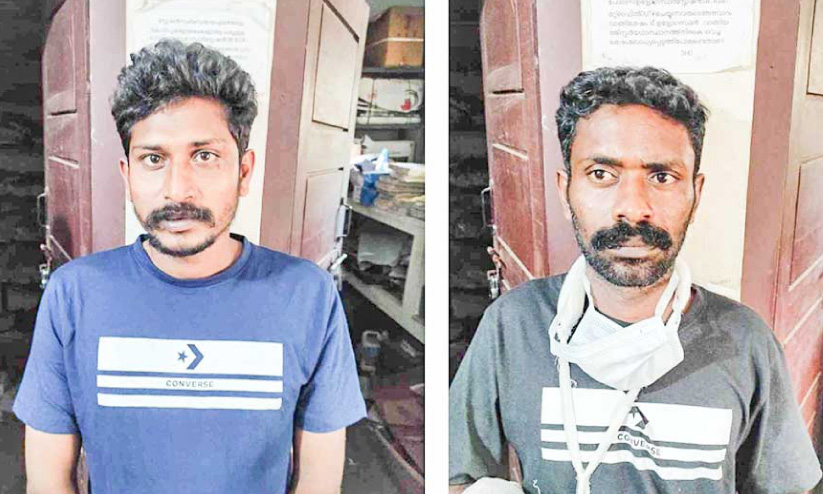 പ്രീതികുളങ്ങര സെറ്റിൽമെന്റ് കോളനിയിൽ ഷണ്മുഖദാസ് (ഷൈജു - 30), പൂന്തോപ്പ് വാർഡ് വെളിയിൽ വീട്ടിൽനിന്നും മാരാരിക്കുളം തെക്കു മാടത്തിങ്കൽ കോളനിയിൽ താമസിക്കുന്ന സുരേഷ് (കുരുവി - 36) എന്നിവരെയാണ് മണ്ണഞ്ചേരി പൊലീസ് അറസ്റ്റ് ചെയ്തത്. ആക്രമണത്തിൽ ഇവരുടെ കൂടെ ഉണ്ടായിരുന്ന ഒരാൾ ഒളിവിലാണ്. ബുധനാഴ്ച വൈകീട്ട് മൂന്നിന് ബൈക്കിലെത്തിയ മൂന്നുപേർ പ്രീതികുളങ്ങര കിഴക്ക് സന്തോഷിന്റെ എൻജിനീയറിങ് വർക്ക് ഷോപ്പിൽ കയറിയാണ് ആക്രമിച്ചത്.