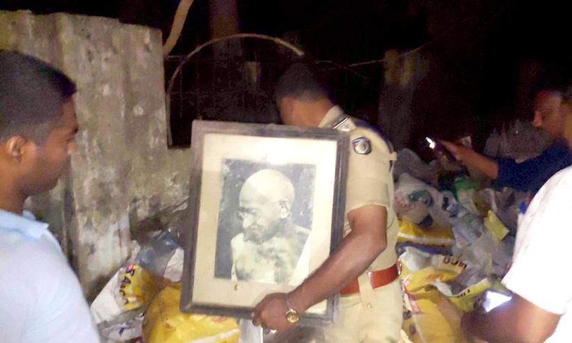 മാലിന്യക്കൂമ്പാരത്തിൽ ഗാന്ധിജിയുടെ ചിത്രം