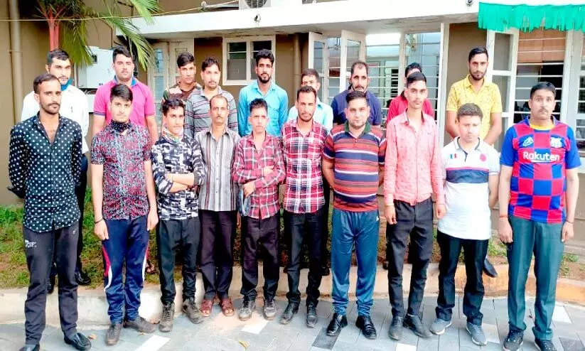കളമശ്ശേരി: സ്വകാര്യ സുരക്ഷ ജീവനക്കാരിൽനിന്നും തോക്ക് പിടിച്ചെടുത്ത സംഭവത്തിൽ 19 യുവാക്കളെ കളമശ്ശേരി പൊലീസ് അറസ്റ്റ് ചെയ്തു. ജമ്മു കശ്മീർ രജൗരി സ്വദേശികളായ നീരജ് കുമാർ (38), നതർ സിങ് (38), ഓംകാർ സിങ് (23), മുഹമ്മദ് ഹനീഫ് (41), അജയ്കുമാർ (25), രാസ് പാർകുമാർ (39), സുരേഷ് കുമാർ (46), അഞ്ചൽകുമാർ (25), രവികുമാർ (24), ഇഷ്ഫാഖ്അഹമ്മദ് (25), മുഹമ്മദ് ഷഫീഖ് (24), നന്ദ് കുമാർ (37), സുഭാഷ് ചന്ദർ (45 ), നരേഷ് കുമാർ (34), സഫീർ അഹമ്മദ് (22), ജാസ് ബിർസിങ്ങ് (35 ), ബിഷാർ കുമാർ (21 ), മുഹമ്മദ് അഷറഫ് (21 ), വിനോദ് കുമാർ (39) എന്നിവരെയാണ് കളമശ്ശേരി സി.ഐ പി.ആർ. സന്തോഷിെൻറ നേതൃത്വത്തിൽ അറസ്റ്റ് ചെയ്തത്. തോക്കുകൾ കൈവശം വെക്കാനുള്ള രേഖകൾ ഹാജരാക്കാൻ സാധിക്കാത്തതിെൻറ പേരിൽ ആയുധ നിരോധന നിയമമനുസരിച്ചാണ് അറസ്റ്റ് എന്ന് സി.ഐ പറഞ്ഞു.