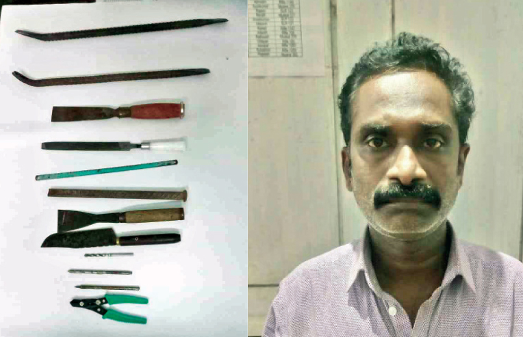 മോഷണത്തിന് ഉപയോഗിക്കുന്ന ആയുധങ്ങളും ഹാന്സ് ഉള്പ്പെടെയുള്ള ലഹരി ഉല്പന്നങ്ങളും പ്രതിയില്നിന്ന് കണ്ടെത്തി. പ്രതിയെ പട്ടാമ്പി കോടതി റിമാന്ഡ് ചെയ്തു.
