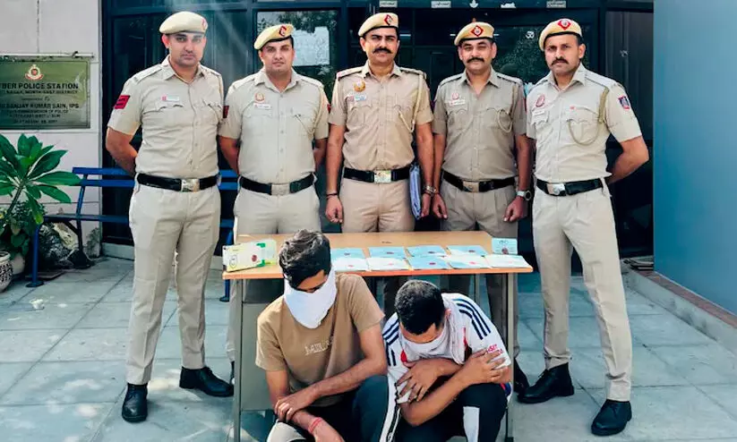 text_fieldsപിടിയിലായ പ്രതികൾക്കൊപ്പം ഡൽഹി സൈബർ പൊലീസ്