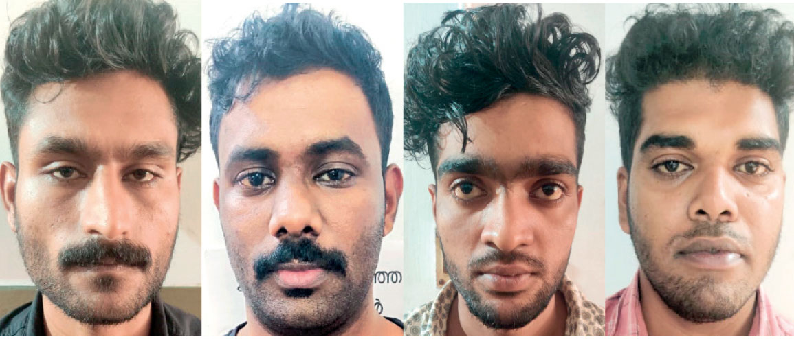 കൊണ്ടോട്ടി: കോഴിക്കോട് വിമാനത്താവളം വഴി അനധികൃതമായി കടത്താന് ശ്രമിച്ച സ്വര്ണം കവരാന് ശ്രമിച്ച അന്തര്ജില്ല മോഷണസംഘത്തെ പ്രത്യേക അന്വേഷണ സംഘം പിടികൂടി. മലപ്പുറം കോഡൂര് താണിക്കല് സ്വദേശി അമിയന് വീട്ടില് ഷംനാദ് ബാവ (കരി ബാവ-26), തിരൂര് നിറമരുതൂര് സ്വദേശി അരങ്ങത്തില് ഫവാസ് (26), താനാളൂര് കമ്പനിപ്പടി സ്വദേശി പള്ളിയാളിത്തൊടി മുഹമ്മദ് യഹിയ (26), പാലക്കാട് ഒറ്റപ്പാലം ചാത്തന് പിലാക്കല് വിഷ്ണു (സല്മാന് ഫാരിസ്-24) എന്നിവരാണ് അറസ്റ്റിലായത്.