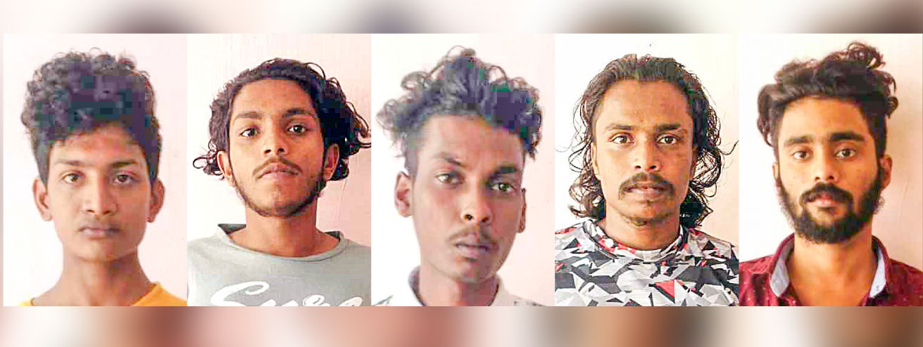 കഴിഞ്ഞയാഴ്ചയാണ് സംഭവം നടന്നത്. അയ്യമ്പുഴ കൊല്ലംകോട് തെക്കിനാൻ വീട്ടിൽ നിഖിൽ (20), കാലടി കൊറ്റമം ശാന്തിപുരം ചക്കിയത്ത് വീട്ടിൽ ഗോഡ്വിൻ (18), കറുകുറ്റി അടിച്ചിലി മുന്നൂർപ്പിള്ളി കാഞ്ഞിലാൻ വീട്ടിൽ സുജിത് (20), നെടുമ്പാശ്ശേരി നസ്രത്ത് മഠം ചെറിയ വാപ്പാലശ്ശേരി ചീരോത്ത് വീട്ടിൽ മനു (25), മലയാറ്റൂർ ഇല്ലിത്തോട് മങ്ങാട്ട് മോളയിൽ വീട്ടിൽ (ഇപ്പോൾ പൊയ്ക്കാട്ടുശ്ശേരിയിൽ വാടകക്ക് താമസിക്കുന്നു) സ്വീറ്റോ (19) എന്നിവരെയാണ് സി.ഐ ബി. സന്തോഷും സംഘവും അറസ്റ്റ് ചെയ്തത്. സംഘത്തിൽ പ്രായപൂർത്തിയാകാത്ത ഒരാളുമുണ്ട്. പ്രതികളെ റിമാൻഡ് ചെയ്തു.