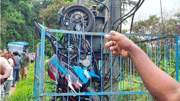 മത്സരയോട്ടത്തിനിടെ ബൈക്ക് ട്രാൻസ്ഫോർമർ വേലിക്കുള്ളിൽ പതിച്ച നിലയിൽ