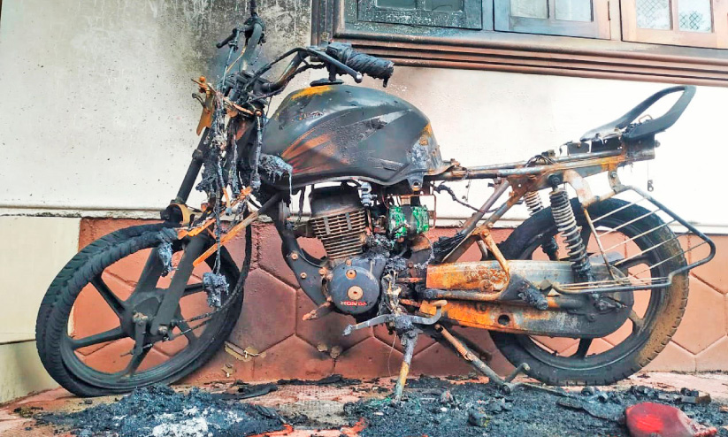 text_fieldsകണ്ണൂർ സിറ്റിയിൽ ആഷിക്കിന്റെ വീട്ടുമുറ്റത്ത് നിർത്തിയിട്ട ബൈക്ക് സാമൂഹിക വിരുദ്ധർ കത്തിച്ച നിലയിൽ