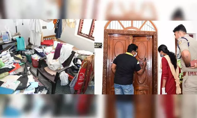 തുടർന്ന് നടത്തിയ പരിശോധനയിൽ വീടിന്റെ താഴത്തെയും മുകളിലത്തെയും നിലകളിൽ വസ്ത്രങ്ങളടക്കം വാരിവലിച്ചിട്ട നിലയിലാണ് കണ്ടത്.