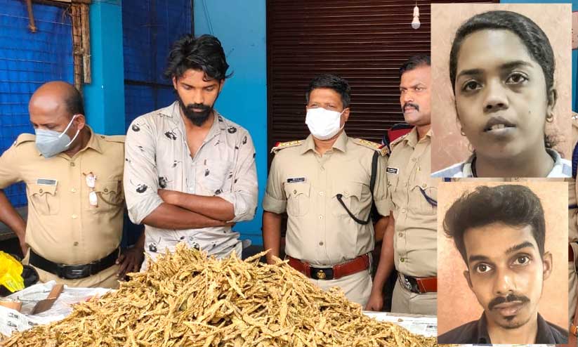 text_fieldsപിടികൂടിയ കഞ്ചാവുമായി റിൻഷാദ്. ഇൻസെറ്റിൽ സുകന്യ, ജുനൈദ്