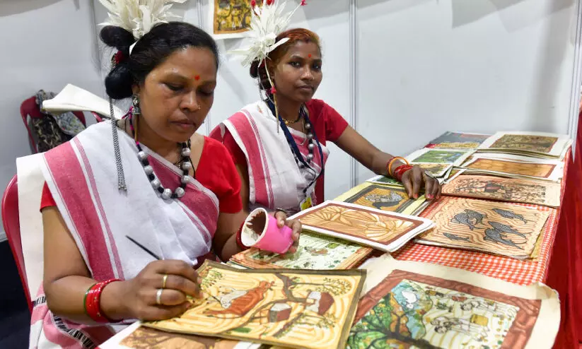 text_fieldsഅന്താരാഷ്ട്ര ഫോക് ലോർ മേളയിൽ ഛത്തിസ്ഗഢിലെ കുരാക് ഗോത്രവർഗക്കാരായ സ്ത്രീകൾ അവതരിപ്പിച്ച ‘ഓറൻ’ ലൈവ് പെയിന്റിങ്