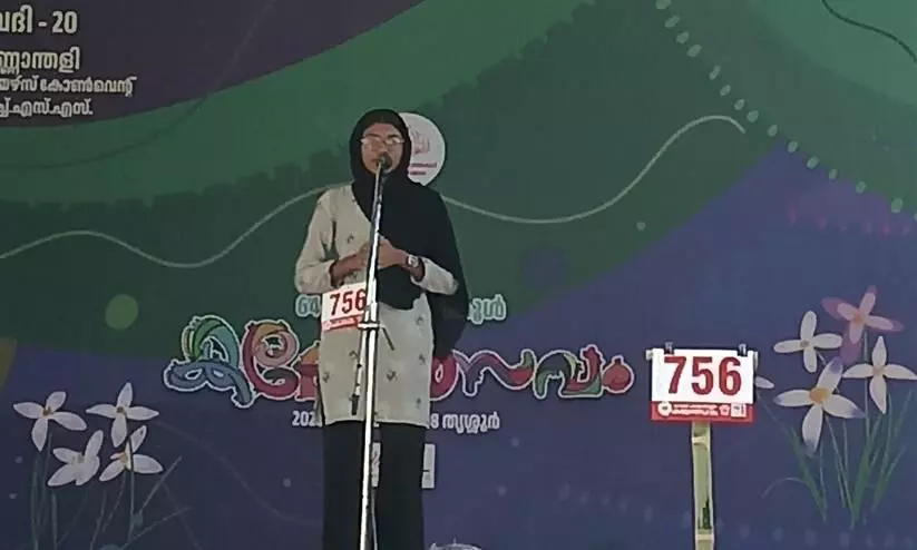 text_fieldsതൃശൂർ: സംസ്ഥാനത്തിന്റെ തെക്കേയറ്റമായ വിതുരയിൽ നിന്ന് ആമിന തൃശൂരിലെ കലോത്സവ വേദിയിലെത്തിയത് ഹാട്രിക്കിന്റെ തിളക്കത്തിലാണ്. വിതുര വി ആൻഡ് എച്ച്.എസ്.എസിൽ പഠിക്കുന്ന ഈ പത്താംക്ലാസുകാരി മൂന്നാം തവണയാണ് തുടർച്ചയായി സംസ്ഥാന കലോത്സവത്തിലെത്തുന്നതും എ ഗ്രേഡുമായി മടങ്ങുന്നതും. നേരത്തേ രണ്ടു തവണയും ചമ്പു പ്രഭാഷണത്തിനാണ് എ ഗ്രേഡ് ലഭിച്ചതെങ്കിൽ ഇത്തവണ പ്രസംഗത്തിനാണ് തിരുവനന്തപുരം ജില്ലയിൽ ഒന്നാമതെത്തി സംസ്ഥാന കലോത്സവത്തിൽ പങ്കെടുക്കുന്നത്.