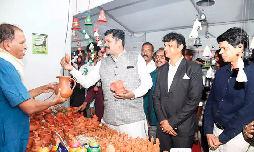 text_fieldsദേശീയ നാടകോത്സവത്തിന്റെ ഭാഗമായി നടക്കുന്ന കരകൗശല മേള സാംസ്കാരിക മന്ത്രി ശിവരാജ് എസ്. തങ്കഡഗി സന്ദര്ശിച്ചപ്പോള്