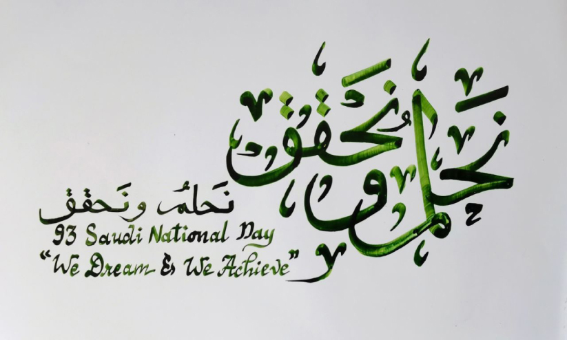 സൗദി അറേബ്യയുടെ 93ാമത് ദേശീയ ദിനാഘോഷ മുദ്രാവാക്യത്തിന്റെ കാലിഗ്രഫി രചന
