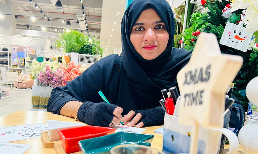 അബൂദബിയിൽ നിന്ന് ഷാർജയിലേക്ക് വീട് മാറിയ വേളയിൽ ചുവരുനിറയെ കാലിഗ്രാഫി- ലെറ്റെറിങ് അലങ്കാരപണികൾ ചെയ്ത് അവൾ തുടക്കമിട്ടത് കലാകാരി എന്ന അഭിമാന പദവിയുടെ ആരംഭഘട്ടമായിട്ടായിരുന്നു.