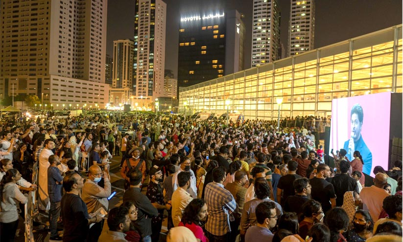 text_fieldsഷാറൂഖ് ഖാന്റെ പരിപാടി കാണാൻ എക്സ്പോ സെന്ററിനുള്ളിൽ ഇടംലഭിക്കാത്തവർ പുറത്ത് സ്ഥാപിച്ച സ്ക്രീനിൽ തത്സമയം വീക്ഷിക്കുന്നു