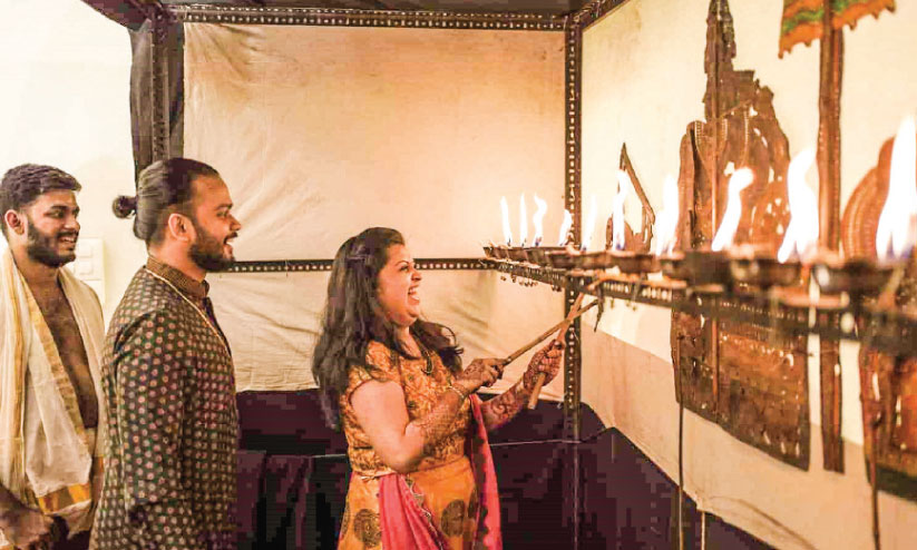 text_fieldsമേടയിലെത്തി വധുവും വരനും തോൽപ്പാവ കൂത്ത് അവതരണം നിരീക്ഷിക്കുന്നു