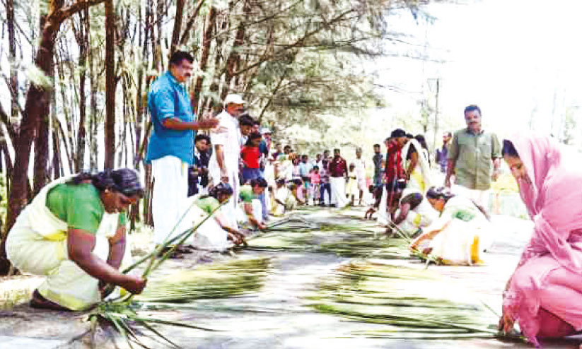 text_fieldsഓണാഘോഷത്തിന്റ ഭാഗമായി പടിഞ്ഞാറേക്കര ടൂറിസം ബീച്ചിൽ സംഘടിപ്പിച്ച ഓല മെടയൽ മത്സരം