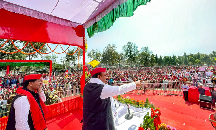 അംബേദ്കർ ജലാൽപൂരിൽ തെരഞ്ഞെടുപ്പ് റാലിയെ അഭിസംബോധന ചെയ്യുന്ന സമാജ്വാദി പാർട്ടി അധ്യക്ഷൻ അഖിലേഷ് യാദവ്