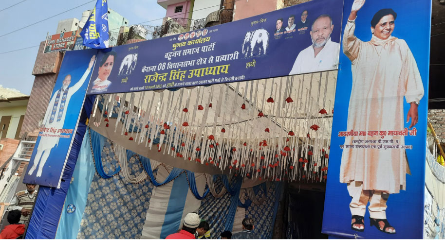 ബി.എസ്.പിക്കാരന്റെ കടക്ക് മുന്നിൽ കമാനം കെട്ടി അതിന്റെ ഓരത്ത് നാല് കസേരകളിട്ടതാണ് ബി.എസ്.പി മണ്ഡലം തെരഞ്ഞെടുപ്പ് കമ്മിറ്റി ഓഫിസ്. കടയിലിരിക്കുന്ന ദീപകിനോട് ബി.എസ്.പിക്കാണോ വോട്ട് എന്നു ചോദിച്ചപ്പോൾ അല്ല എന്നായിരുന്നു മറുപടി. ബി.ജെ.പിയുടെ മൃഗങ്കക്കായിരിക്കും തന്റെ വോട്ട് എന്ന സൂചന നൽകി. അവർ ജയിക്കുമെന്നും സമാജ് വാദി പാർട്ടിയുടെ നവീദ് തോൽക്കുമെന്നും ദീപക് തുടർന്നു. ഓഫിസിലേക്ക് വന്ന വിശ്വകർമ വിഭാഗക്കാരനായ രാകേഷും വോട്ടു ചെയ്യുന്നത് ബി.ജെ.പിക്ക് തന്നെ. ബി.എസ്.പിക്ക് വേണ്ടി സംസാരിക്കാൻ ആരെ കിട്ടുമെന്ന് ചോദിച്ചപ്പോൾ സ്ഥാനാർഥിയുടെ അനന്തരവൻ അമിത് ഉപാധ്യായയെ വിളിച്ചു തന്നു.