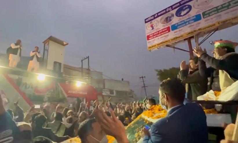 അഖിലേഷിനൊപ്പം ആർ.എൽ.ഡി നേതാവ് ജയന്ത് ചൗധരിയുമുണ്ടായിരുന്നു. നിയമസഭ തെരഞ്ഞെടുപ്പിൽ എസ്.പി -ആൽ.എൽ.ഡി സഖ്യമാണ് മത്സരിക്കുന്നത്. തുറന്ന കാറിലായിരുന്ന പ്രിയങ്ക ഇരുവരെയും പ്രവർത്തകരെയും കൈവീശി അഭിവാദ്യം ചെയ്യുകയായിരുന്നു. ബസിന് മുകളിലായിരുന്ന അഖിലേഷും ജയന്ത് ചൗധരിയും പ്രിയങ്കയെ കൈകൂപ്പി അഭിവാദ്യം ചെയ്തു.