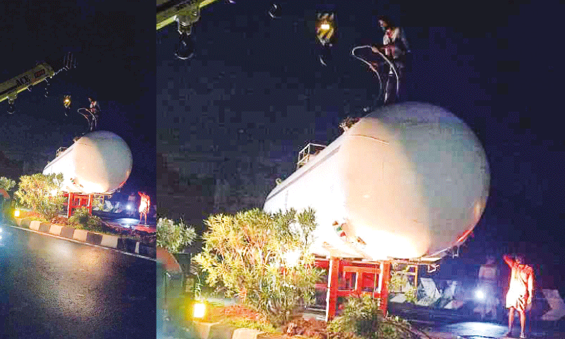 text_fieldsദേശീയപാത എരിമയൂർ മേൽപാലത്തിൽ നിയന്ത്രണംവിട്ട് ഡിവൈഡറിൽ കയറിയ ഗ്യാസ് ടാങ്കർ ലോറി