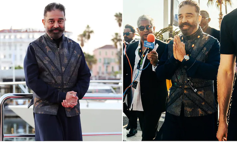 പാരീസ്: ദക്ഷിണേന്ത്യൻ സൂപ്പർസ്റ്റാർ കമൽഹാസന്റെ കാന് ലുക്കാണ് ഇപ്പോൾ സമൂഹമാധ്യമങ്ങളിൽ വൈറലാകുന്നത്. ഡിസൈനർമാരായ ശാന്തനുവും നിഖിലും ചേർന്ന് നിർമ്മിച്ച സ്റ്റൈലിഷ് ബ്ലാക്ക് കുർത്തയും ജാക്കറ്റും താരത്തിന്റെ കാന് ലുക്ക് ശ്രദ്ധേയമാക്കി.
