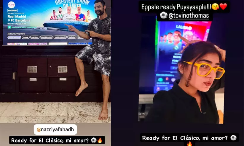 എല് ക്ലാസിക്കോ പോരാട്ടത്തിന് മുമ്പ് നസ്രിയയെ ടാഗ് ചെയ്ത് സ്റ്റോറിയുമായി ടൊവി! 'എപ്പളേ റെഡി പുയ്യാപ്ലേ' എന്ന് നസ്രിയ!