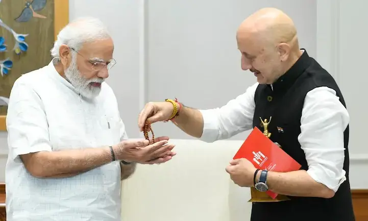 നടൻ അനുപം ഖേർ മോദിയെ കണ്ടു, അമ്മ നൽകിയ രുദ്രാക്ഷമാല സമ്മാനിച്ചു