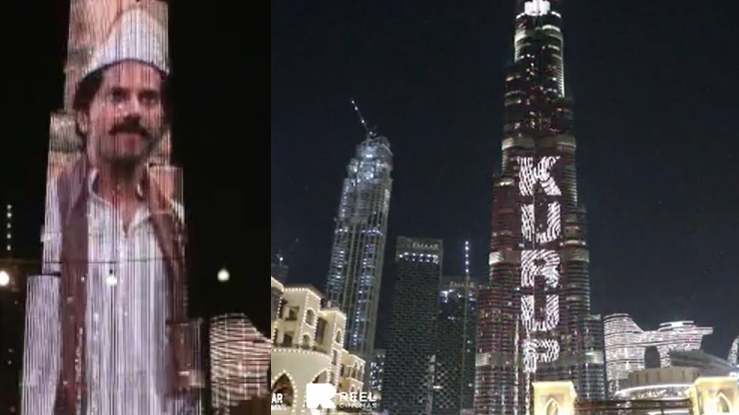 'കുറുപ്പ്' ബുർജിൽ തെളിഞ്ഞു; സാക്ഷിയായി ദുൽഖറും കുടുംബവും