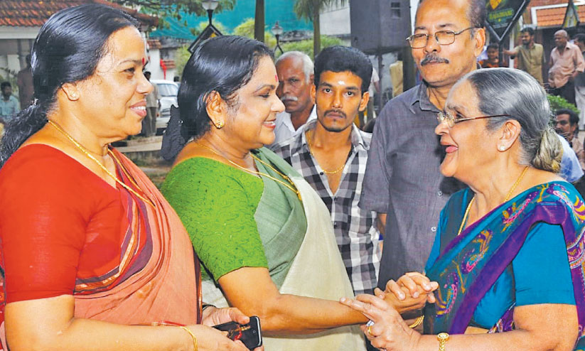 text_fieldsകെ.പി.എ.സി ലളിത സുബ്രഹ്മണ്യ ഷേണായിയുടെ ഭാര്യ രേവതി ഷേണായിയുമായി സൗഹൃദ സംഭാഷണത്തിൽ (ഫയൽ പടം)