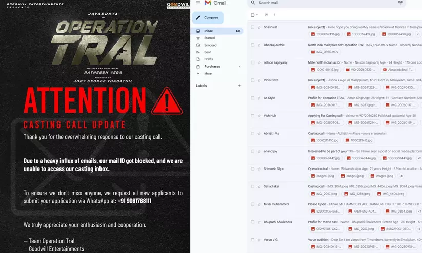 ‘ഓപ്പറേഷൻ ത്രാൾ’ കാസ്റ്റിങ് കോളിന് പാൻ ഇന്ത്യൻ റീച്ച്! യുവാക്കൾ ഇടിച്ചുകയറിയതോടെ ഇ-മെയിൽ ഹാങ്ങായി