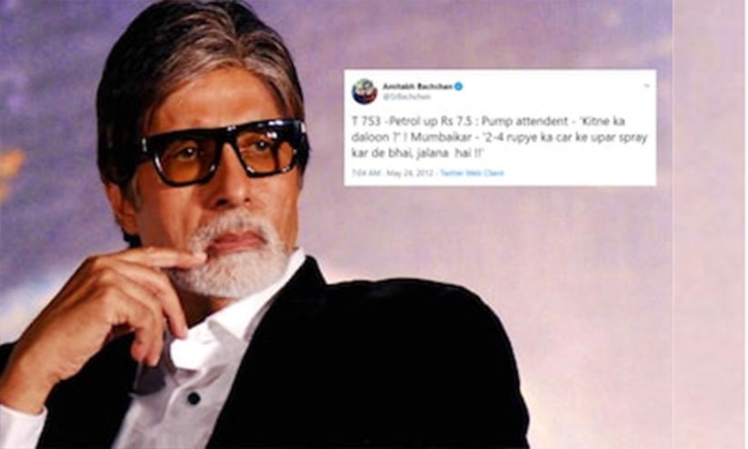 2012മേയ് 24ന് പെട്രോളിന് 7.50 രൂപ വർധിപ്പിച്ചപ്പോഴായിരുന്നു ബച്ചന്റെ പ്രതിഷേധ ട്വീറ്റ്. അന്ന് ലിറ്ററിന് 63 രൂപയായാണ് ഉയർന്നത്. പെട്രോൾ പമ്പ് ജീവനക്കാരനും ഇന്ധനം നിറക്കാനെത്തിയ മുംബൈക്കാരനും തമ്മിലുള്ള സംഭാഷണമെന്ന രൂപേണയായിരുന്നു ബച്ചന്റെ ട്വീറ്റ്. ട്വീറ്റിന്റെ പൂർണ രൂപം: ''ടി. 753. പെട്രോളിന് 7.5 രൂപ വർധിച്ചിരിക്കുന്നു. പെട്രോൾ പമ്പ് ജീവനക്കാരൻ: എത്ര രൂപക്ക് അടിക്കണം? മുംബൈക്കാരൻ: സഹോദരാ, ഒരു രണ്ട് -നാല് രൂപക്ക് കാറിന്റെ മേലെ തളിച്ചാൽ മതി. ഇത് കത്തിച്ചു കളയാം..!!''. അന്ന് ഏറെ പേർ ഏറ്റുപിടിച്ച ട്വീറ്റ് രണ്ടാം യു.പി.എ സർക്കാറിനെതിരെ ജനവികാരം ആളിക്കത്തിക്കാൻ സഹായിച്ചിരുന്നു.