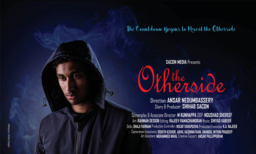 text_fieldsകൊച്ചി: സാകോൺ മീഡിയയുടെ ബാനറിൽ അൻസാർ നെടുമ്പാശ്ശേരി സംവിധാനം ചെയ്യുന്ന The Otherside ഹ്രസ്വചിത്രത്തിന്റെ ആദ്യ കാരക്ടർ പോസ്റ്റർ പുറത്തിറങ്ങി. നടൻ ജയൻ ചേർത്തലയുടെ ഫേസ്ബുക് പേജിലൂടെയാണ് പോസ്റ്റർ പ്രകാശനം ചെയ്തത്. ചിത്രത്തിന്റെ മുമ്പിറങ്ങിയ പോസ്റ്ററുകളുടെ തുർച്ചയായി, ഇരുട്ടിലേക്കു തിരിഞ്ഞു നിന്ന കഥാപാത്രത്തിന്റെ മുഖം വ്യക്തമാവുന്ന രീതിയിൽ Motion Poster ആയാണ് ഇത് തയാറാക്കിയിരിക്കുന്നത്. The Countdown Begins to Reveal the Otherside എന്ന അടിക്കുറിപ്പോടെയായിരുന്നു മുൻ പോസ്റ്ററുകൾ. ചിത്രത്തിൽ മുഖ്യകഥാപാത്രത്തെ അവതരിപ്പിക്കുന്ന മുഹമ്മദ് രന്തീസിയാണ് വെളിച്ചത്തിലേക്കു വരുന്ന താരം. ആർട്ടിസ്റ്റ് എം. കുഞ്ഞാപ്പയാണ് പോസ്റ്റർ ഡിസൈൻ ചെയ്തിരിക്കുന്നത്.