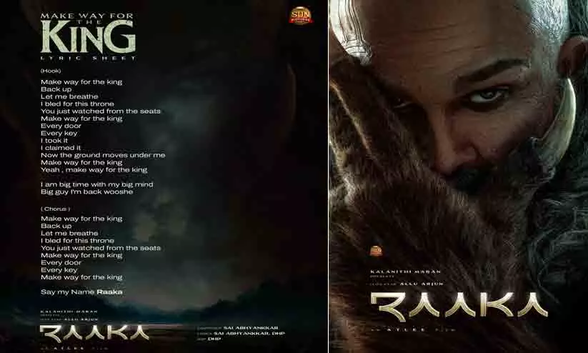 text_fieldsഅല്ലു അർജുനും ബ്ലോക്ക്ബസ്റ്റർ സംവിധായകൻ അറ്റ്ലിയും ഒന്നിക്കുന്ന പുതിയ ചിത്രം 'രാക്ക'യുടെ തീം സോങായി എത്തിയിരിക്കുന്ന 'മേക്ക് വേ ഫോർ ദ കിങ്' തുടങ്ങുന്ന വരികളോടെയുള്ള ലിറിക്കൽ വിഡിയോ ഇപ്പോൾ സോഷ്യൽ മീഡിയയിൽ തരംഗമാവുകയാണ്. സായ് അഭ്യങ്കർ ആണ് ഗാനം ആലപിച്ചിരിക്കുന്നതും സംഗീതം നൽകിയിരിക്കുന്നതും. യുവ സംഗീത പ്രതിഭ സായ് അഭ്യങ്കർ ഒരുക്കിയ ആവേശമുണർത്തുന്ന ഈ തീം സോങ് ഇതിനകം തന്നെ ആരാധകർ ഏറ്റെടുത്തു കഴിഞ്ഞു. ഇതിനകം നാൽപത് ലക്ഷത്തിലധികം കാഴ്ചക്കാരാണ് തീം സോങ്ങിന് ലഭിച്ചിരിക്കുന്നത്. സിനിമയുടെ ദൃശ്യഭംഗിയും അല്ലു അർജുന്റെ മാസ് പ്രകടനവും സൂചിപ്പിക്കുന്ന തരത്തിലാണ് വിഡിയോ ഒരുക്കിയിരിക്കുന്നത്.