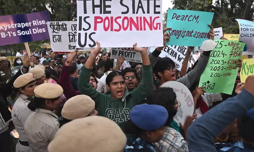 ‘ഓരോ ശ്വാസവും കാൻസറിലേക്ക് ഒരു ചുവട് അടുപ്പിക്കുന്നു; പുകവലിക്കുന്നവരുടെ ശ്വാസകോശവുമായി കുട്ടികൾ ജനിക്കുന്നു’; വിഷവായുവിൽ സഹികെട്ട് തെരുവിലിറങ്ങി ഡൽഹിക്കാർ